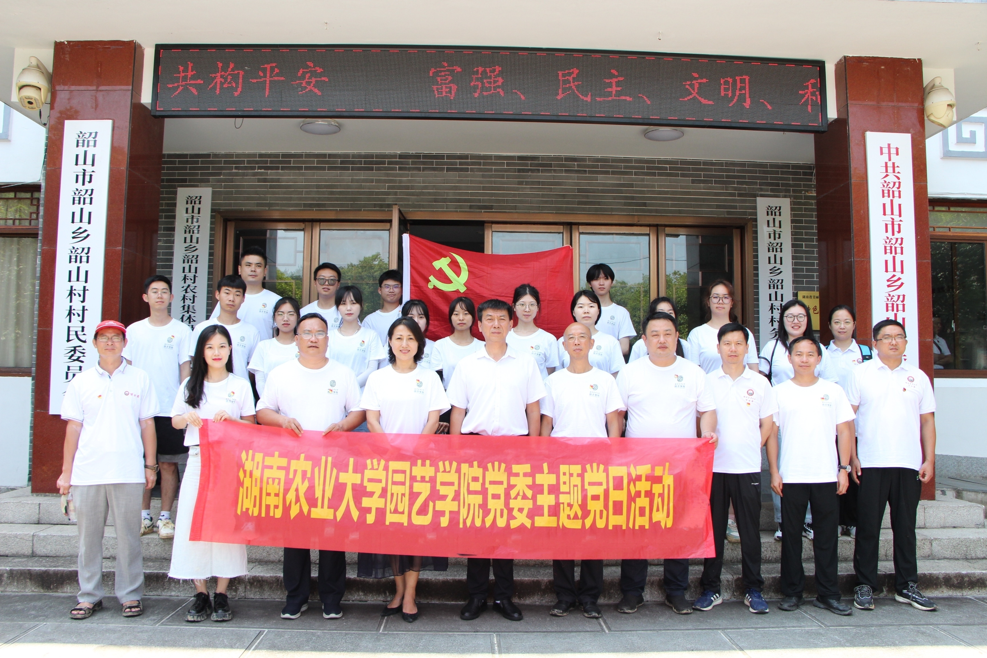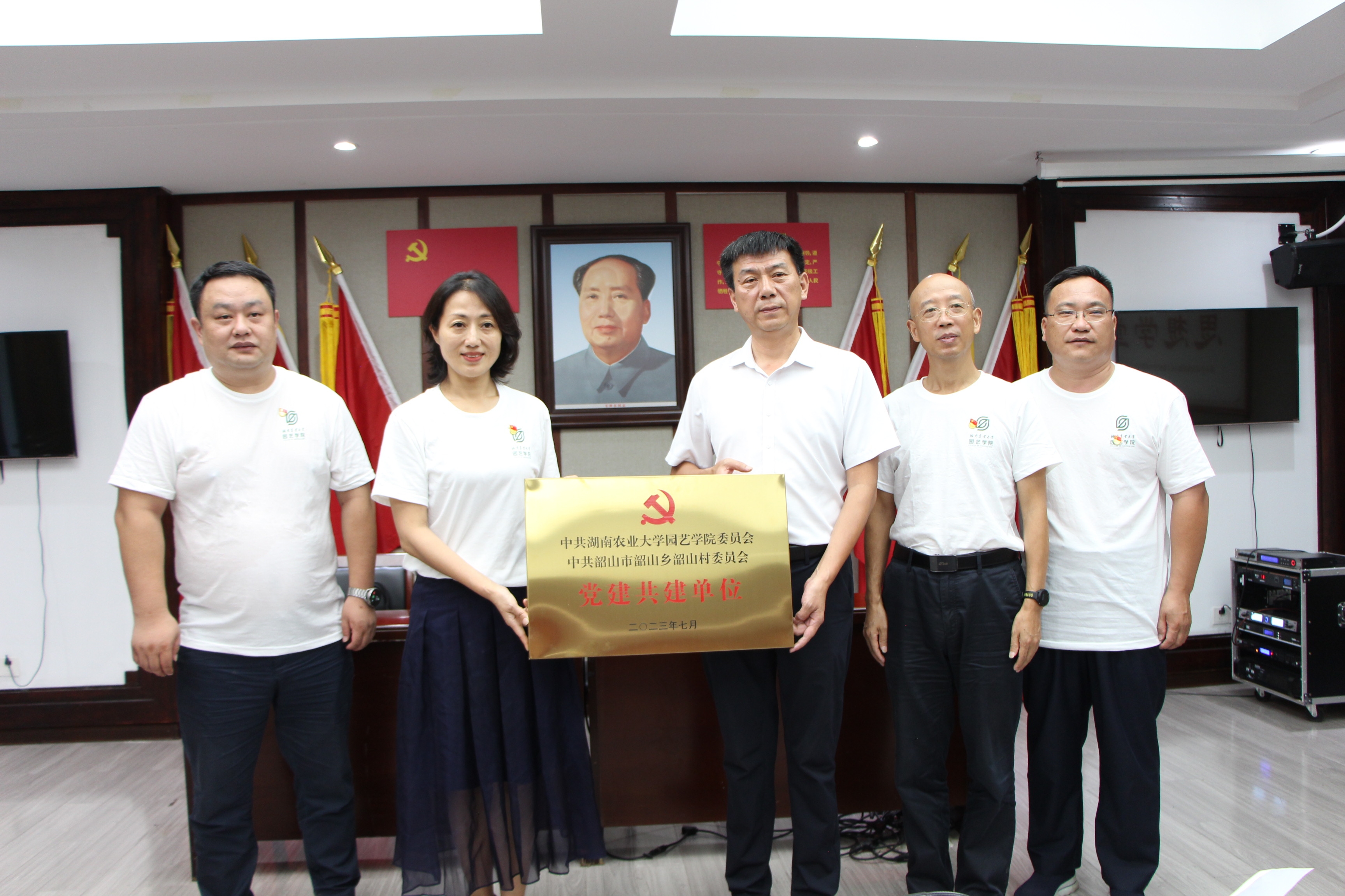 best365登录官网党委与韶山村党委共同揭牌——“党建共建单位”,希望双方加强党建联系,通过在伟人故里开展红色研学,感受浓厚的红色文化氛围,推动双方支部理论联学、思想联育、人才联培、活动联办,实现“红色+”文化党建聚合发展。在韶山市三农培训中心双方共建“‘红色+’园艺产业社会实践基地”,旨在发挥园艺学科优势,科技下乡定点帮扶,通过社会实践深入调查研究,为农业发展精准建言献策,为农民增收创收,助力韶山产业发展、乡村振兴。