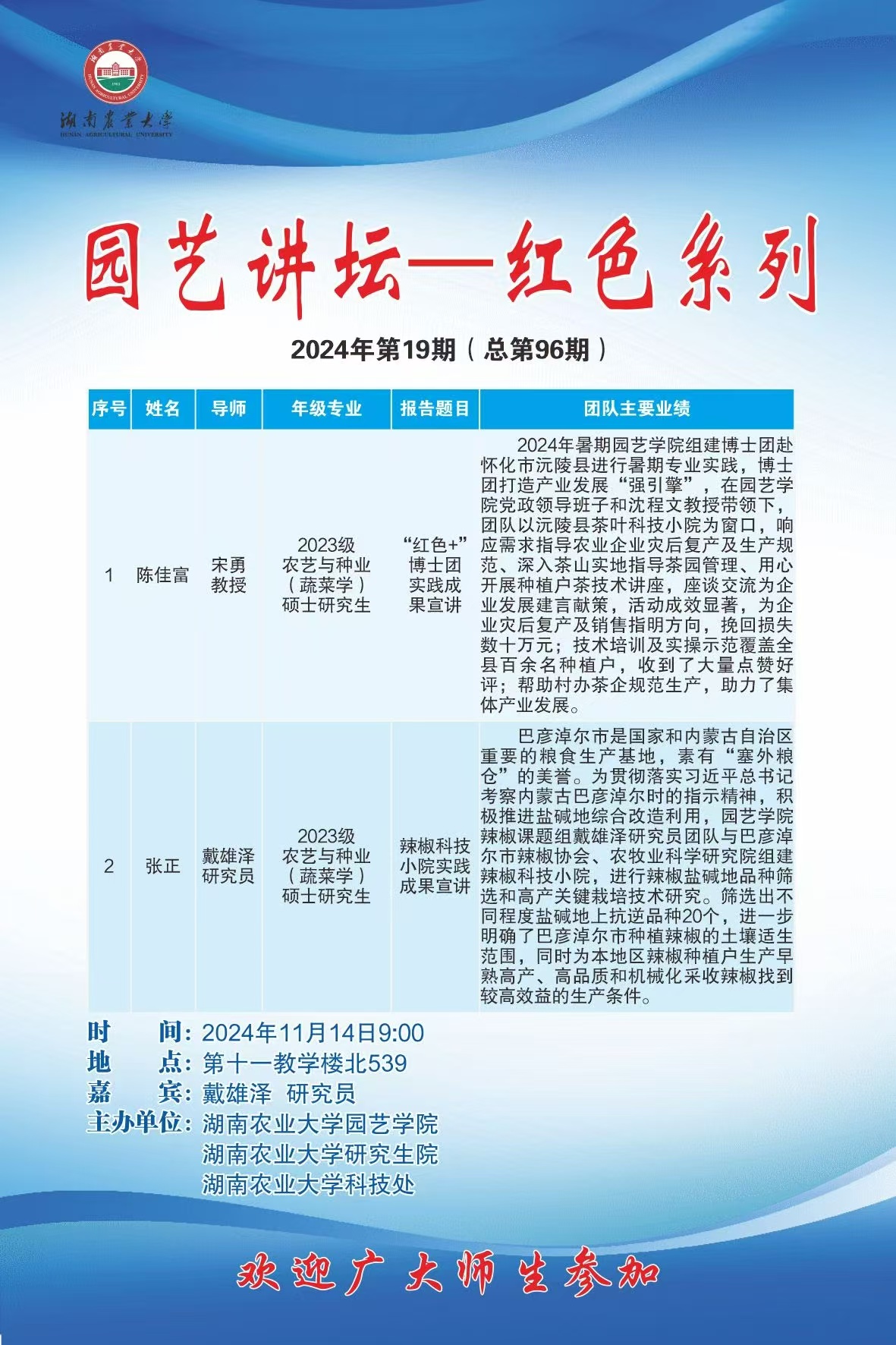 园艺讲坛第九十六期-红色讲坛:“红色+”博士团实践成果宣讲;辣椒科技小院实践成果宣讲
