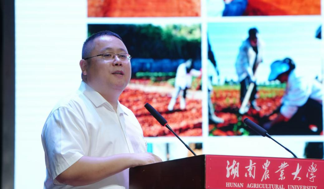 校友代表、湘研种业总经理刘荣云以其求学与创业经历,围绕“知农、爱农、为农”分享体会。他勉励新生扎实学业、热爱农业、勇于创新,把个人成长融入乡村振兴和农业现代化进程,在服务“三农”中实现青春价值。
