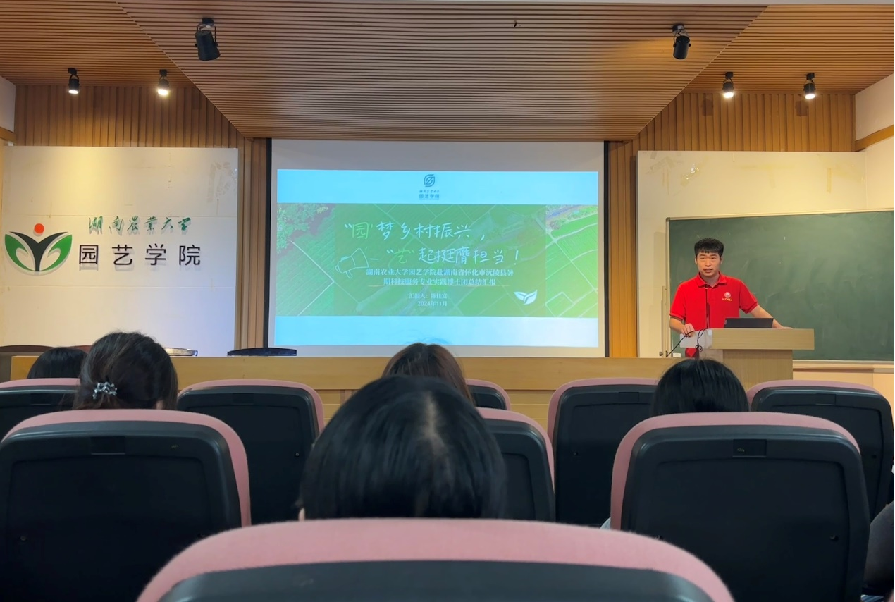 陈佳富详细分享了他于2024年暑期参与学院“红色+”博士团赴湖南省怀化市沅陵县进行科技服务专业实践活动的经历。博士团由党委书记何长征与院长武涛亲自带队,为沅陵县提供灾后复产指导服务。沈程文教授组织茶园栽培管理以及夏秋茶加工技术的专业培训,提升农户的专业技能水平。此外,博士团还策划了防溺水教育、自护能力培训、茶文化科普等一系列实践活动。活动中,博士团荣获校级“优秀团队”称号,陈佳富荣获校级“先进个人”称号。他表示,此次实践活动不仅丰富了自己实践经历,更为沅陵县的乡村振兴事业注入了新的活力与动力,充分展现了园艺学子建设美好家园的青春风采与责任担当。